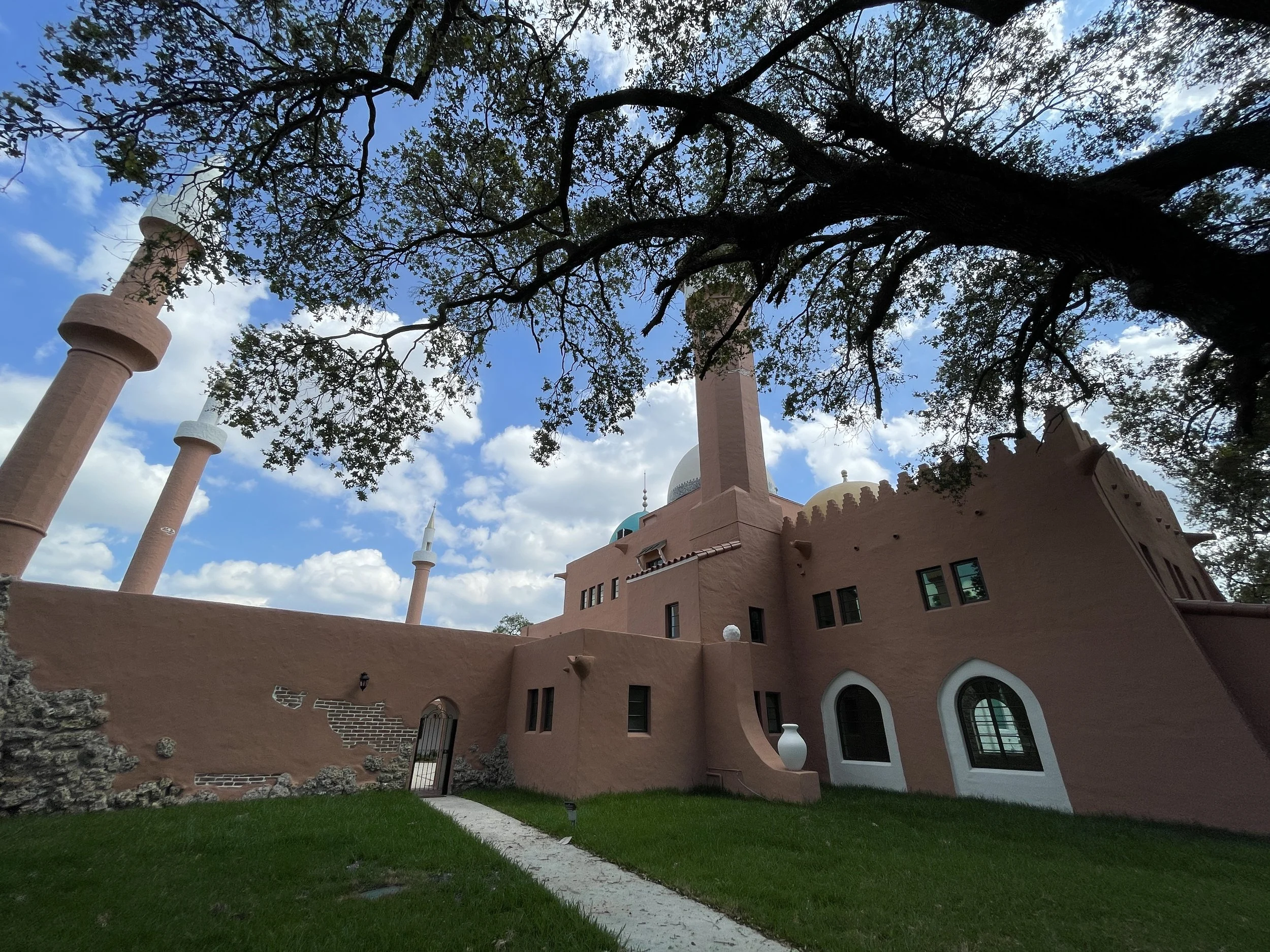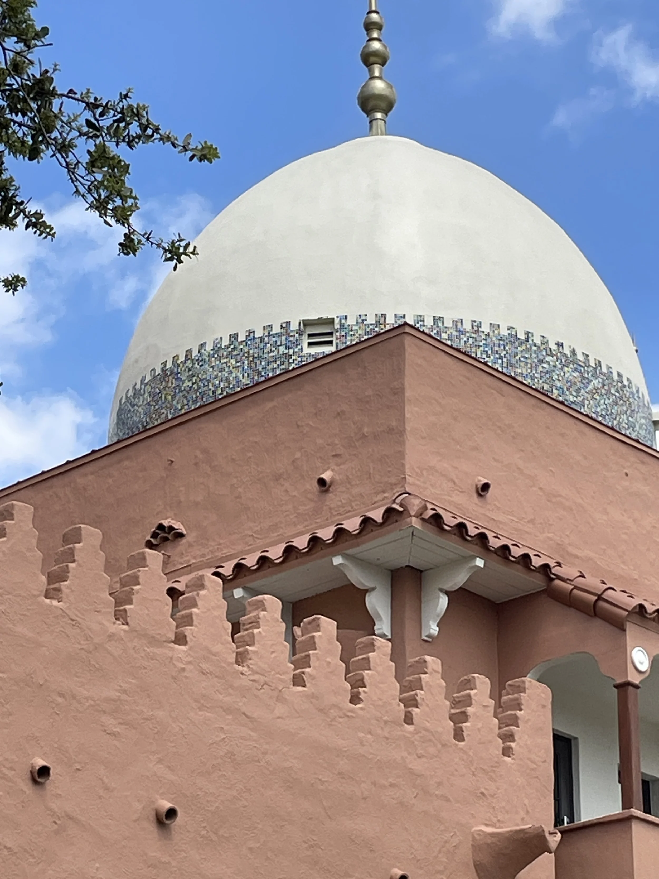 The renovations included protection and restoration of existing architectural features including the wood stairs, painted Moorish details on the first floor, new doors and windows, restoration of existing doors, reinstallation of mosaic tiles on the building domes as depicted in the original drawings, restoration and fabrication of the metal finials on all the domes and minarets, new finishes to complement the existing finishes, restoration of existing historic lighting fixtures, re-roofing, existing stucco rehab and repainting as per original dwgs. All the work adhered to the Secretary of the Interior Standards for Rehabilitation and Guidelines for Rehabilitating Historic Buildings.